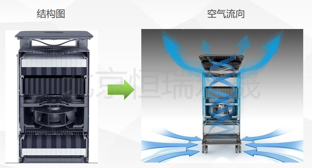 運行原理:風(fēng)機將外部空氣吸入空氣凈化器,然后通過各種濾網(wǎng)將其凈化。另外一個風(fēng)機再將潔凈的空氣送回房間。這一過程需要運行特別安靜的風(fēng)機,并進(jìn)行精確控制,以適應(yīng)特殊情況。