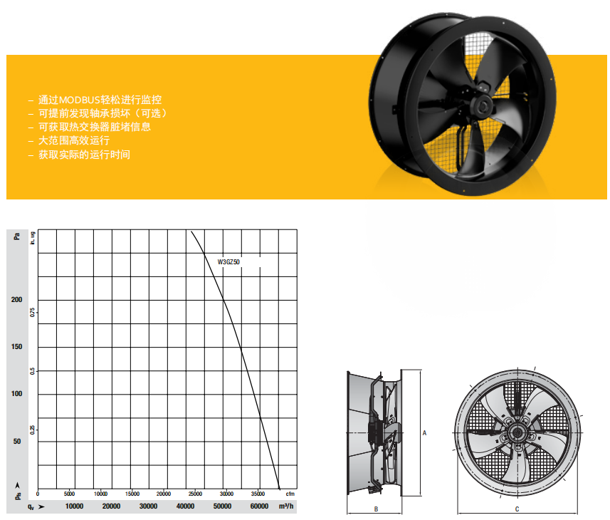 W3G Z50憑借其高效的空氣動力學(xué)特性、集成的驅(qū)動器和接口,非常適合高效率的應(yīng)用需求。搭配有帶集成擴(kuò)散器的雙法蘭外殼,使其成為軸流風(fēng)機(jī)靜音運(yùn)行的杰出典范。