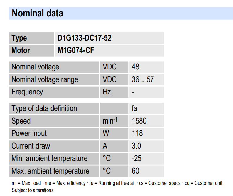 D1G160-DA33-52風量:980m³/h 電壓:48v 電流:2.9A 功率:112W 轉速:1250r/min