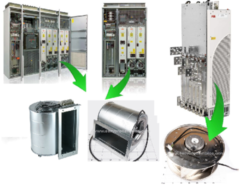 變頻器底部的大風(fēng)扇是用來(lái)給變頻器的IGBT等大功率原件散熱的,小風(fēng)扇是用來(lái)給CPU板、驅(qū)動(dòng)板、電源板等電子部分散熱。