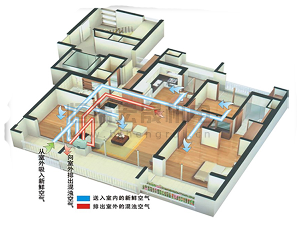 新風系統(tǒng)是由送風系統(tǒng)和排風系統(tǒng)組成的一套獨立空氣處理系統(tǒng)。新風系統(tǒng)是根據在密閉的室內一側用專用設備向室內送新風,再從另一側由專用設備向室外排出,在室內會形成“新風流動場”,從而滿足室內新風換氣的需要。采用高風壓、大流量風機、依靠機械強力由一側向室內送風,由另一側用專門設計的排風風機向室外排出的方式強迫在系統(tǒng)內形成新風流動場。在送風的同時對進入室內的空氣進過濾、滅毒、殺菌、增氧、預熱(冬天)。