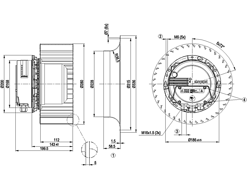 德國(guó)ebmpapst R3G280-AN32-01離心風(fēng)機(jī)結(jié)構(gòu)圖