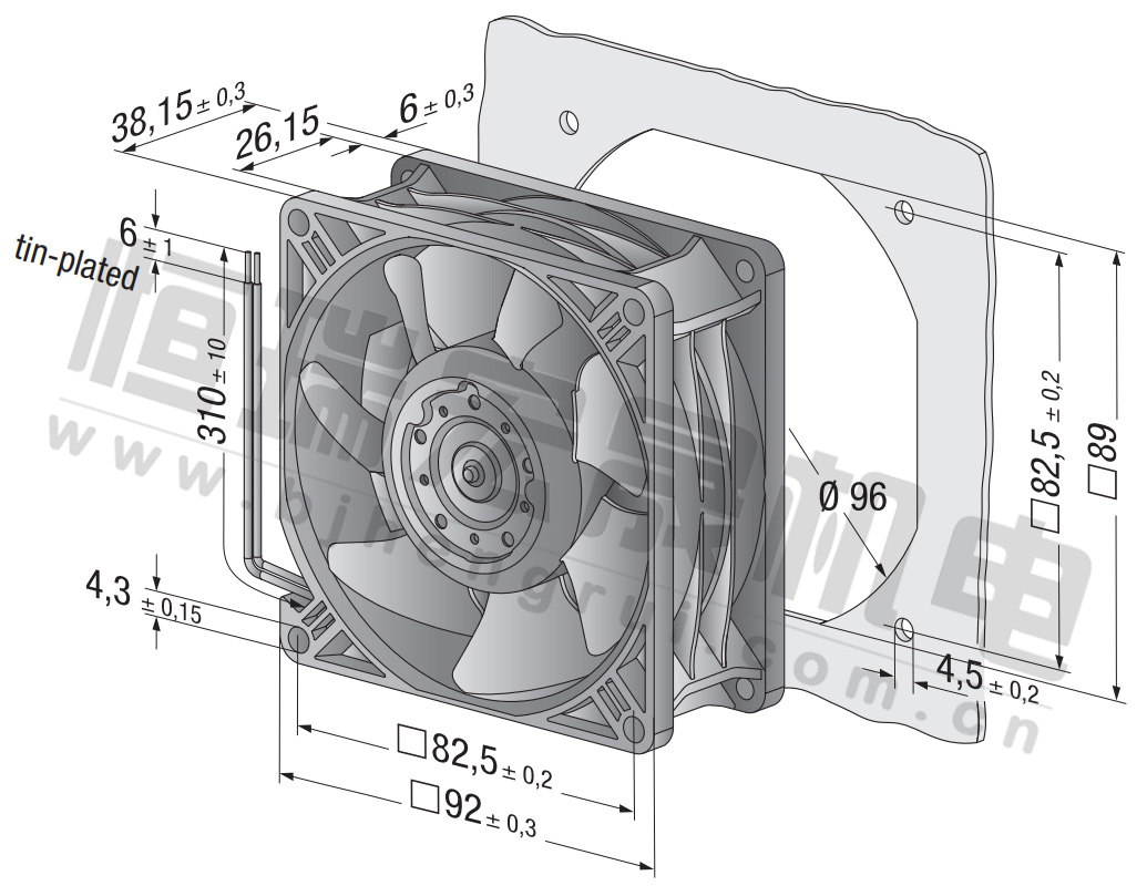 3856風量:54m³/h 電壓:230v 電流:3.8A 功率:6.0W 轉速:1550r/min
