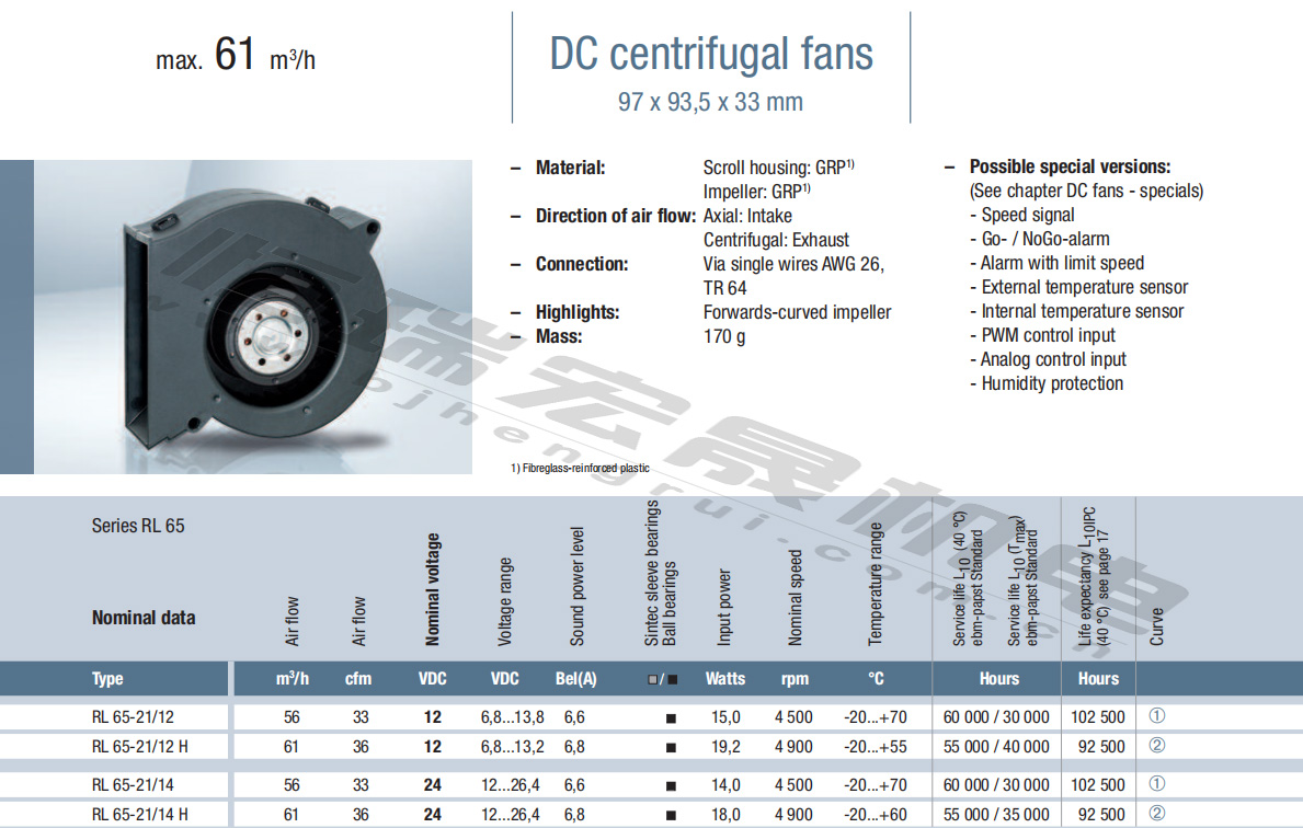 RL65-21/14H風(fēng)量:61m³/h 電壓:24v 電流:6.8A 功率:18W 轉(zhuǎn)速:4900r/min