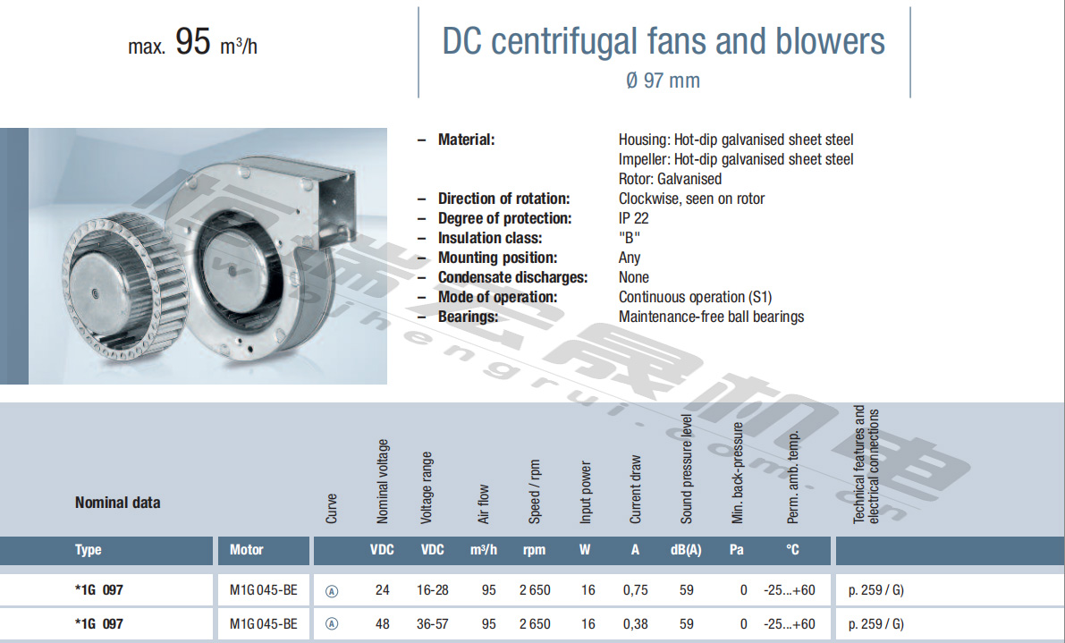 G1G085-AB05-01風(fēng)量:95m³/h 電壓:24v 電流:0.64A 功率:14W 轉(zhuǎn)速:2850r/min