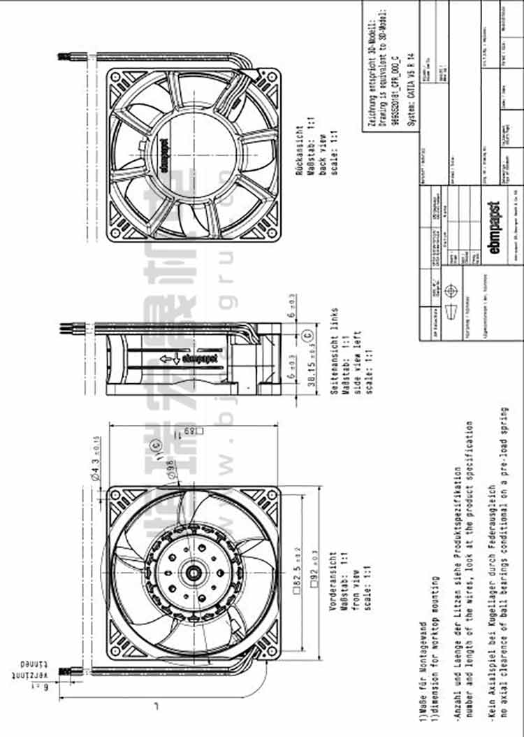德國ebmpapst 3214J/2H4P軸流風機結構圖
