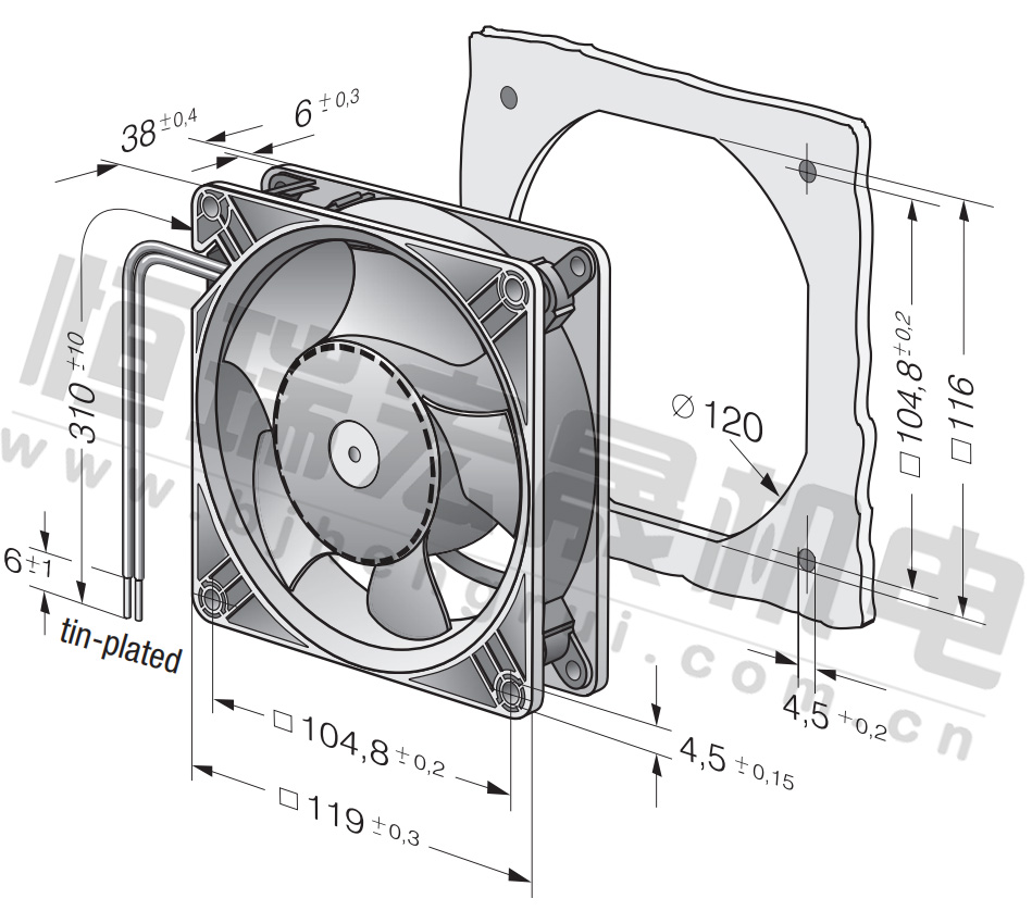 DV 6424 風(fēng)量:530m³/h 電壓:24v 噪音:65Db 功率:40W 轉(zhuǎn)速:4300r/min