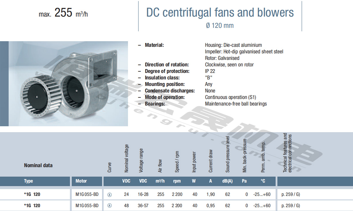 G1G146-BA07-52風(fēng)量:470m³/h 電壓:24v 電流:5A 功率:100W 轉(zhuǎn)速:2200r/min