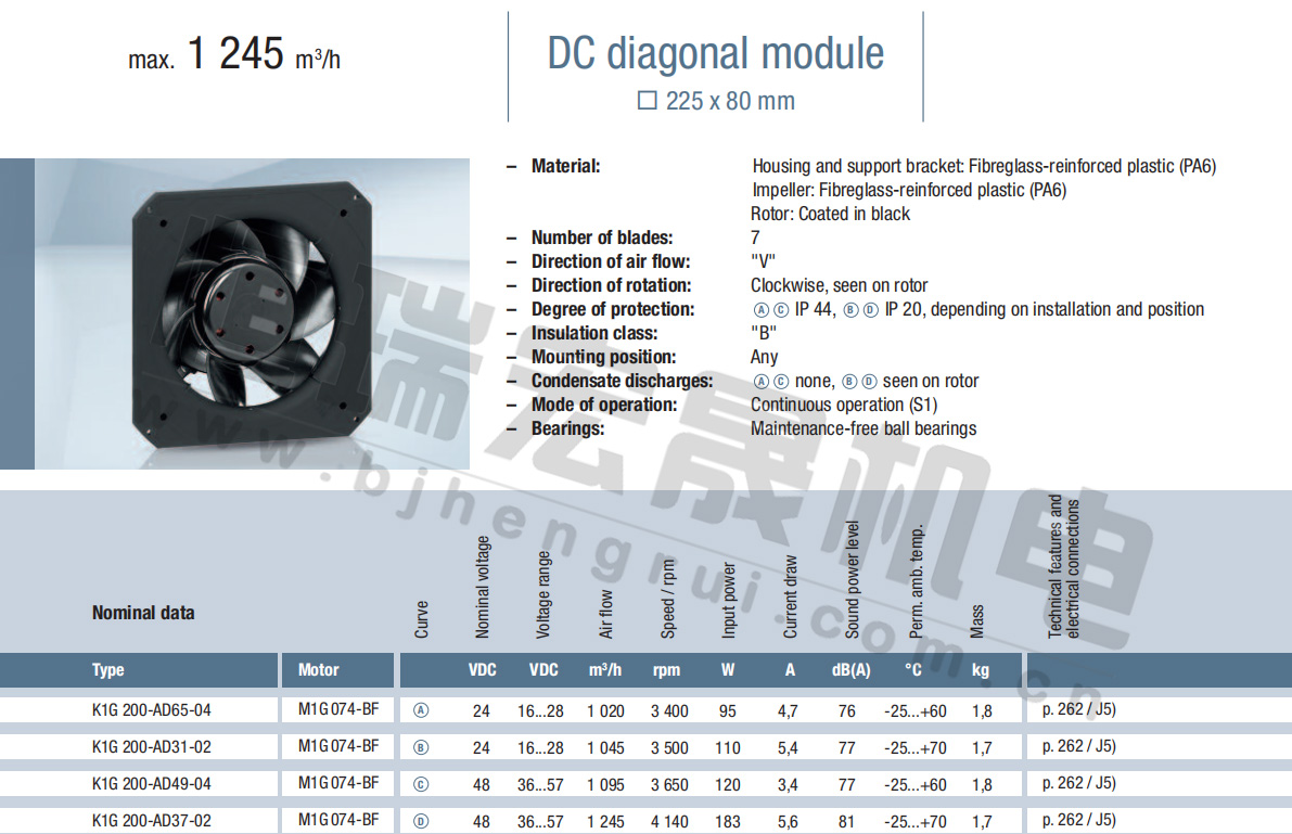 K1G200-AD31-02風(fēng)量:1045m³/h 電壓:24v 噪音:77Db 功率:110W 轉(zhuǎn)速:3500r/min