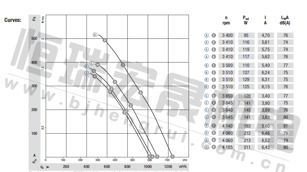 德國ebm全新K1G200-AD31-02 K1G200-AD49-04緊湊型風(fēng)機曲線圖