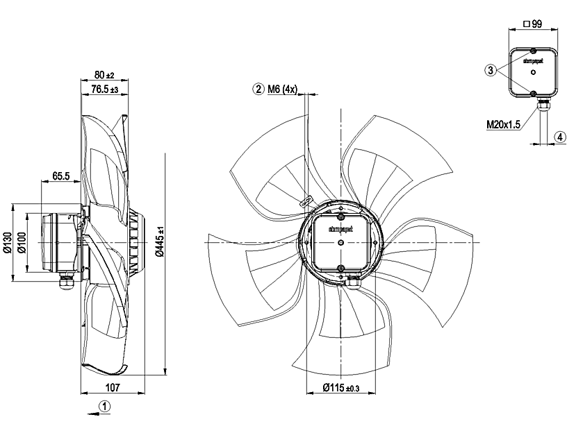 原裝軸流ebm風(fēng)機(jī)A4E450-AU03-01的規(guī)格圖