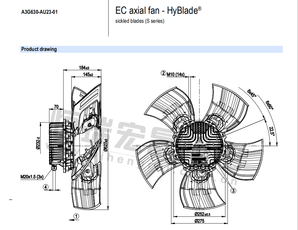 低價熱賣A3G630-AU23-01軸流風(fēng)機,適用于通風(fēng)散熱制冷行業(yè)
