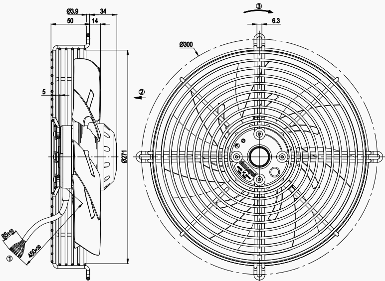 原裝正品軸流ebm風(fēng)機(jī)S4D250-AH22-01的規(guī)格圖