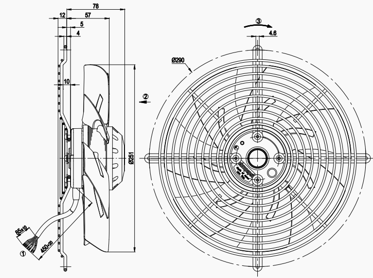 原裝正品軸流ebm風(fēng)機(jī)S4D250-BH22-01的規(guī)格圖