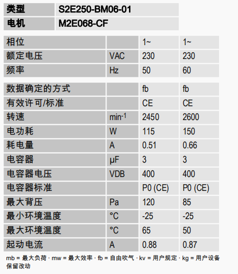 原裝正品軸流ebm風(fēng)機(jī)S2E250-BM06-01的規(guī)格圖