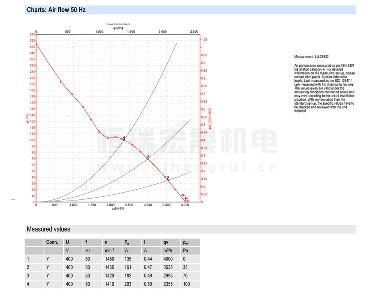 德國ebmpapst S4D400-AP12-38 軸流風機結構風量圖