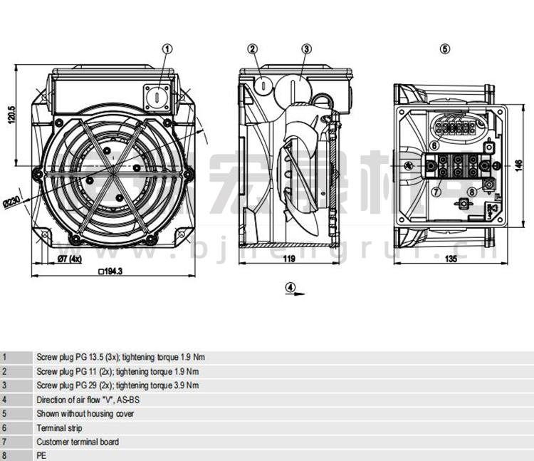 德國ebmpapst W2D160-EB22-12風機結構圖