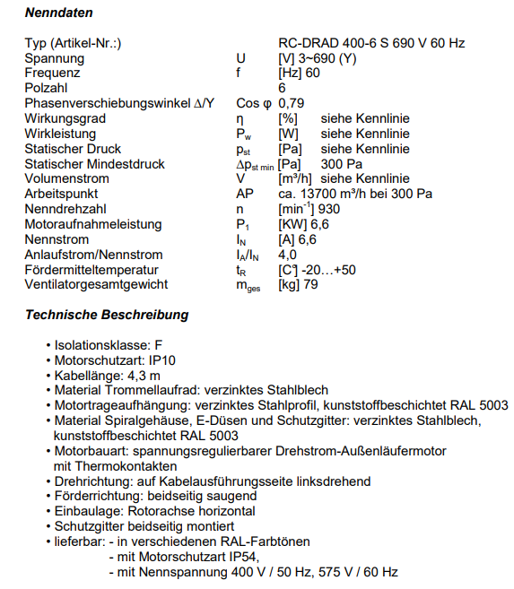 RC-TECHNIK | 型號:RC-DRAD 400-6 S 3~690 V/60 Hz