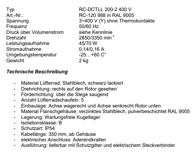 RC-DCTLL 200-2 400 V / RC-DCTLL 200-2 500 V軸流風機,適用于通風散熱制冷,能源技術行業(yè)
