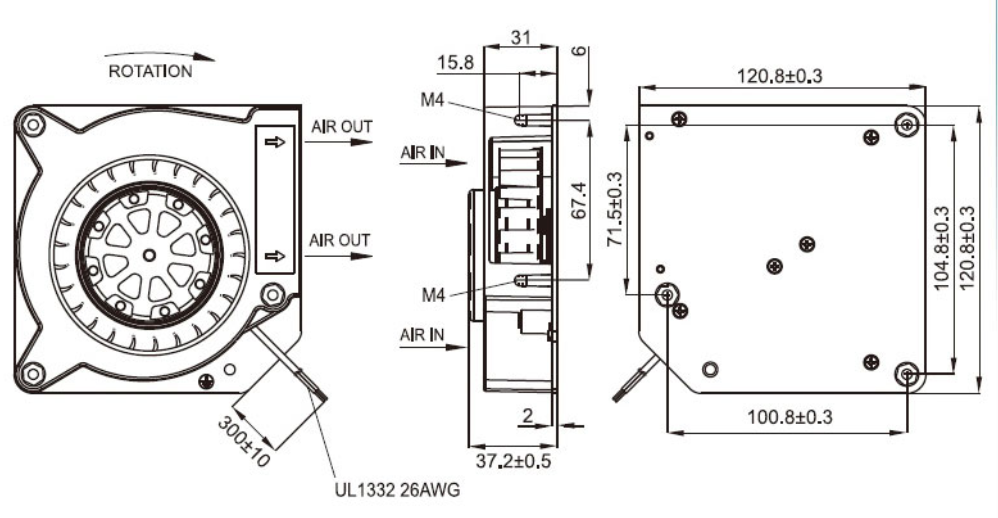 鼓風扇采用離心扇馬達結(jié)構, 進出風口的集中設計, 能讓風吹更遠