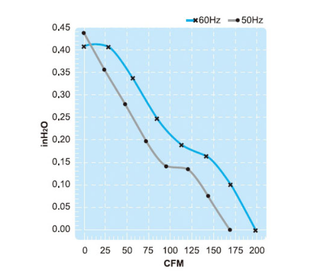 | Maximum Pressure | 0.43/0.4 InchH2O | 0.43/0.4 InchH2O | |