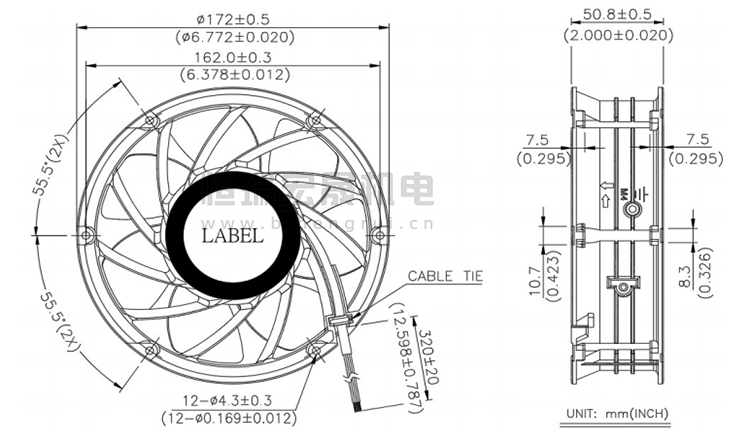 Ø172*50.8mm 臺(tái)達(dá)Delta風(fēng)機(jī)結(jié)構(gòu)圖