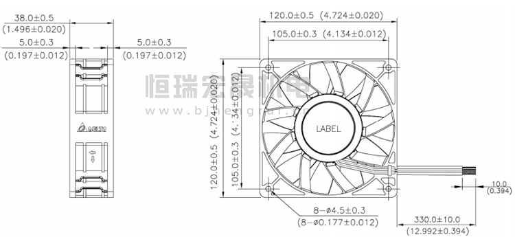 120*120*38mm 臺(tái)達(dá)Delta風(fēng)機(jī)結(jié)構(gòu)圖