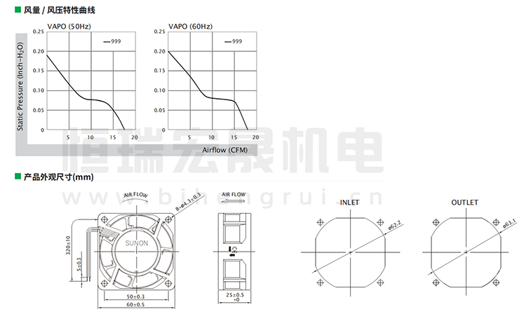 SUNON建準 CF2062HVL-1000C-999 軸流風機結(jié)構(gòu)風量圖