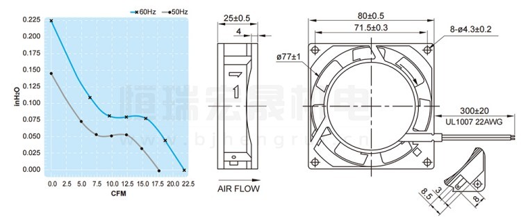 UF-80B23BTH FULLTECH 福佑風機結構風量圖: