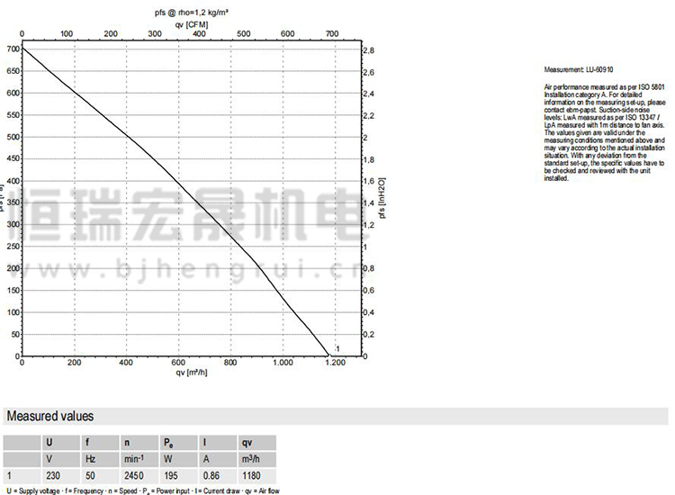 德國ebmpapst K2E250-AA01-09風機曲線圖