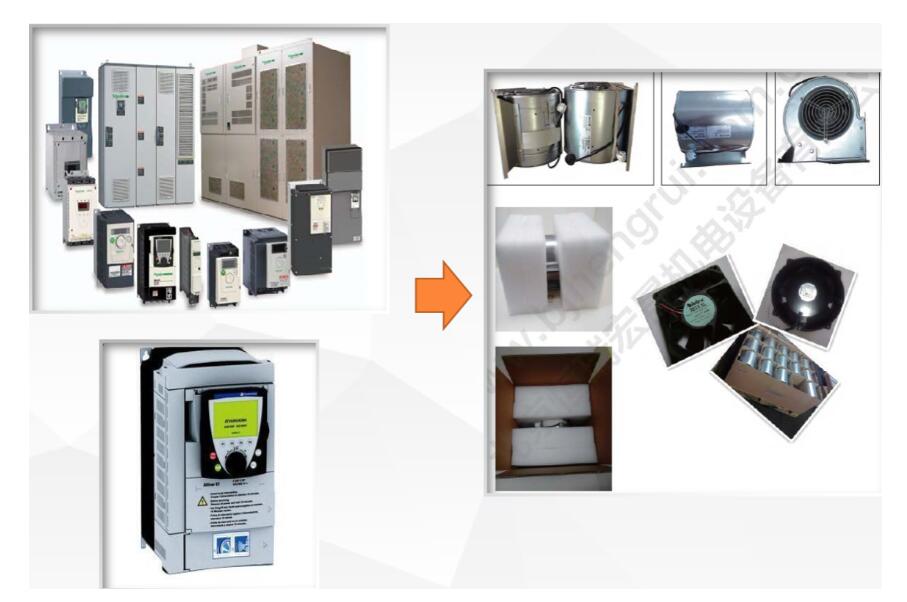 變頻器底部的大風(fēng)扇是用來給變頻器的IGBT等大功率原件散熱的,小風(fēng)扇是用來給CPU板、驅(qū)動(dòng)板、電源板等電子部分散熱。Ebmpapst離心風(fēng)機(jī)具有極低的噪音水平和高功率密度,它們可以滿足狹小空間及大風(fēng)量的需求,葉輪是根據(jù)空氣動(dòng)力學(xué)和幾何要求設(shè)計(jì)的。為了獲得更佳效率,除了電壓控制的異步電動(dòng)機(jī)外,還使用了高性能的Green Tech EC電動(dòng)機(jī)。兩種驅(qū)動(dòng)器類型均可在整個(gè)功率范圍內(nèi)使用。